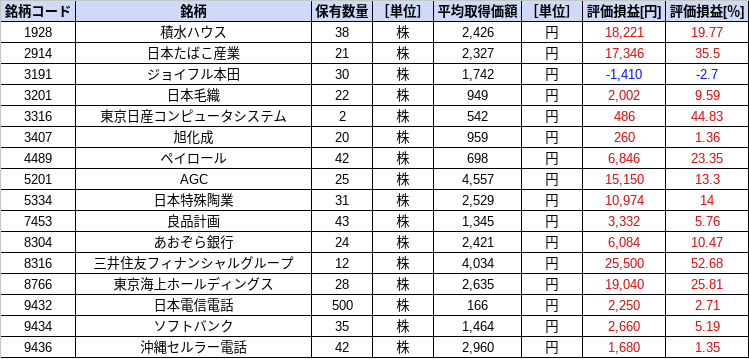 ネオモバイル証券で保有している日本株の一覧をご紹介します。