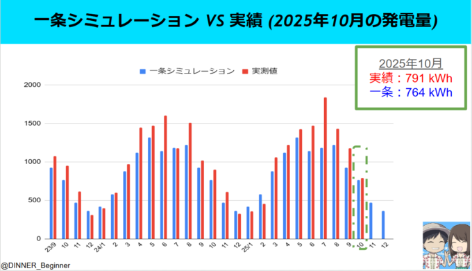 2025年10月は一条シミュレーション<発電実績でした。