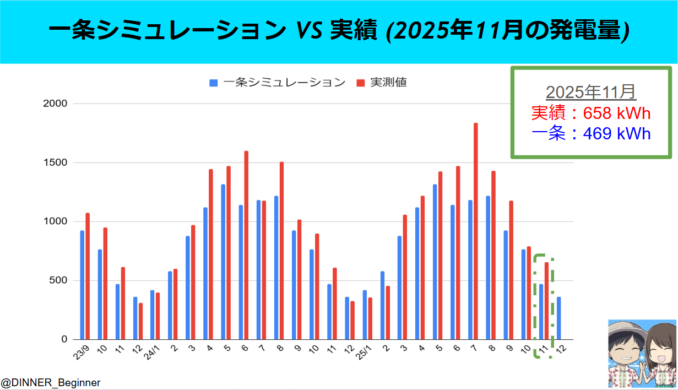 最後に、2025年11月の実際の太陽光発電+蓄電池メリット・電気代・売電量をまとめます。