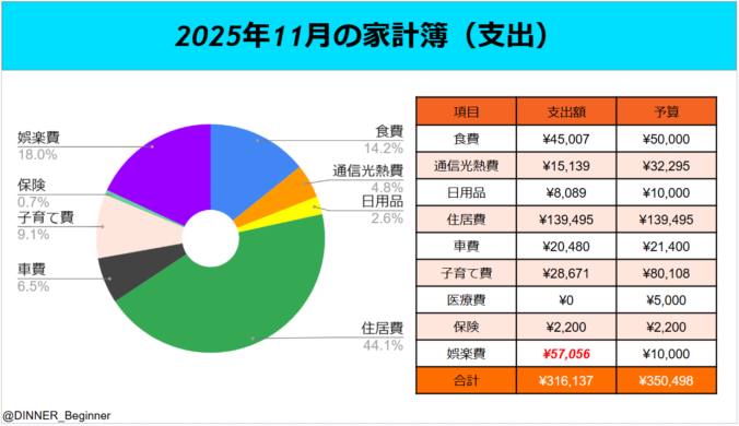 2025年11月の家計簿について、まとめさせて頂きます。