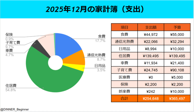 →12月:貯蓄率45.4%でFinish!車検や子どもの入院がありましたが、まずまず貯蓄できたと思います。